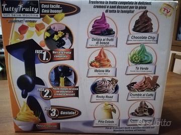 Frullatore / macchina per dessert a base di frutta congelata, usato pochissimo, buona per frutta di piccole dimensioni e acquosa come fragole, frutti di bosco, pesche ; funziona lentamente per frutta più pastosa tipo le mele. Disponibilità immediata.