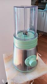 Frullatore per smoothie Silvercrest.Corpo macchina in acciaio inossidabile con dettagli in colore verde acqua.Dispone di due livelli di velocità e una funzione "P" (Pulse).