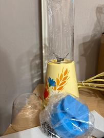 Frullotto, il pratico e compatto frullatore per sperimentare nuove ricette e gusti per la tua colazione. Con borraccia estraibile da portare sempre con te. DETTAGLI DEL PRODOTTO Materiale: plastica ABS per il corpo, tritan per la bottiglia, acciaio inox per le lame Personalizzazione: Corpo parte esterna colore giallo pantone 1205c con decal fasciante. Bottiglia: fiori a rilievo in trasparenza. Tappo colore azzurro con casetta del Mulino a rilievo Frullino automatico completo di base elettrica con bottiglia separabile per portarsi i frullati dove si vuole