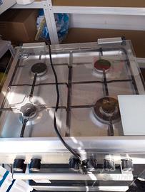 La Cucina 60x60 SS461GEX con estetica inox offre un design elegante e funzionalità avanzate. I 4 fuochi gas, inclusa una tripla corona, garantiscono massima versatilità. Il forno a gas, con grill elettrico, ha una capacità di 59 litri e offre praticità con la luce interna, termostato e valvola sicurezza gas. Dimensioni: 860 x 600 x 600 mm.