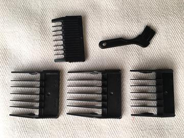 Tagliacapelli comprensiva di manuale avvertenze; 4 pettini guida tagliacapelli da 3, 6, 9 e 12 mm proteggi lama e pennellino per la pulizia.