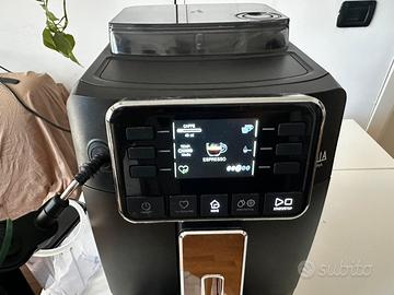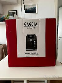 Macchina da caffè super-automatica, made in Italy, Gaggia, modello Cadorna Milk. Schermo a colori e ampia varietà di bevande caffè e latte, ottenibili comodamente con un click grazie alla caraffa esterna. La macchina è in perfette condizioni e offre una qualità in tazza eccellente. Unico accorgimento, visibile nella prima foto: il beccuccio del sistema latte è da assicurare all’emulsiatore con un semplice elastico.