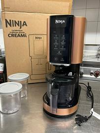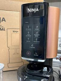Gelatiera Ninja CREAMi (spina UE), 3 vasetti con coperchio, corpo lame pala mescolatrice Creamerizer, unità di base con motore, ricettario. Parti rimovibili lavabili in lavastoviglie. Peso 6,4 kg. Colore: Nero e rame