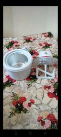 Gelateria per un gelato fatto in casa. Macchina che produce il gelato , sorbetti e granite. Cestello da 1,2 litri che produce un gelato da 0,6 kg. Motore pala e coperchio smontabili. Potenza 12W.