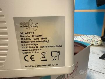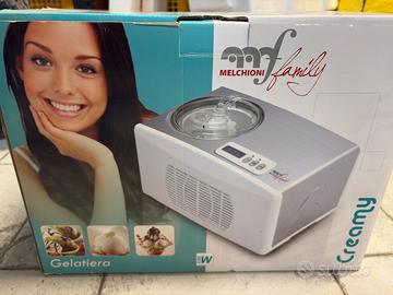 Vendo gelatiera Melchioni Family modello CREAMY, con compressore integrato (non necessita del freezer). Utilizzata una sola volta, pari al nuovo, perfettamente funzionante e completa di scatola e imballi originali. Ideale per preparare in casa: gelato artigianale sorbetti frozen yogurt Caratteristiche principali: Potenza: 150 W Raffreddamento autonomo con compressore Coperchio trasparente con apertura Display digitale e timer Realizzata con finitura in acciaio inox Facile da usare e da pulire Vendo per inutilizzo.Disponibile per ritiro a mano o spedizione.