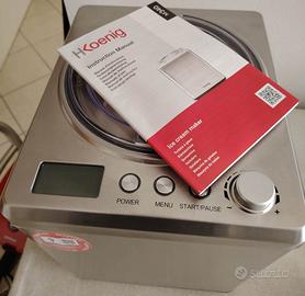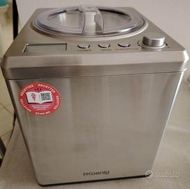 Gelatiera professionale H.Koenig, modello HF340. Caratteristiche: capacità di 2L, 180 W, refrigeratore e raffreddatore, preparazione rapida tra i 30 ai 40 minuti di yogurt, sorbetto, gelato e granite. Ciotola di preparazione in acciaio inox antiaderente e rimovibile, facile da pulire dopo ogni utilizzo. Spegnimento automatico; design verticale in acciaio inox. Il coperchio può essere aperto in qualsiasi momento per aggiungere altri ingredienti, durante la preparazione. CARATTERISTICHE AVANZATE: grazie al refrigeratore integrato e al display LCD, questa gelatiera è pratica ed efficiente da usare. Inoltre, la funzione di mantenimento del freddo assicura che i dessert rimangano freschi anche al termine del processo di preparazione. Viene fornita con una paletta per gelato, un bicchiere misurino in plastica ed un libretto di istruzione in cui sono contenute anche la maggior parte delle ricette. Si trova ancora nel suo imballo originale. E' davvero un ottimo affare, perchè l'ho usata 2/3 volte ed è praticamente NUOVA. Il prezzo di mercato si aggira sui 350/400 euro. Il gelato è davvero ottimo. Sono costretta a venderla, causa trasloco in una casa più piccola.