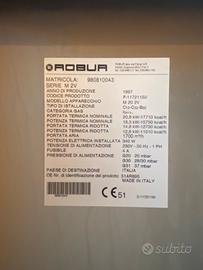 Vendesi generatore d’aria calda industriale ROBUR modello M20, potenza ~20 kW, compatibile con gas metano o GPL.
