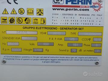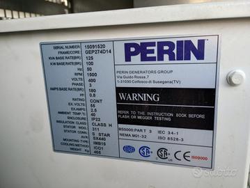 Gruppo elettrogeno marca Perin KVA 125 - KW 100 - HZ 50 Contattatemi al 349 2235011 Zona Ritiro Rosà