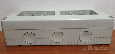 CONTENITORE PER APPARECCHI SYSTEM - ORIZZONTALE - 6 POSTI - MODULO 3x2 - GRIGIO RAL 7035 - IP40 DESCRIZIONE: 6 posti COLORE: Grigio RAL 7035 N. FORI Ø 23 SFONDABILI: Laterali 8 / Sul fondo 2 TIPO SFONDABILI: Asportabili con utensile GRADO DI PROTEZIONE: IP40 CLASSE ISOLAMENTO: II RESISTENZA AGLI URTI: IK07 CONFIGURAZIONE: Modulo 3 x 2 PREDISPOSIZIONE SCOMPARTI: 2 CARATTERISTICHE: Halogen free VITI COPERCHIO: Acciaio resistente alla corrosione COPPIA SERRAGGIO VITI: 0.8 N/m DIM. ESTERNE BxHxP (mm): 198x82x55