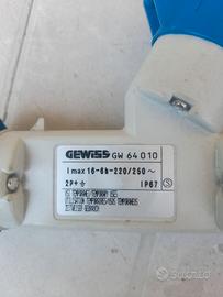 Gewiss GW64010-Presa multipla accoppiatore, 2 uscite con spina 16 A, IP67, 6 pezzi, riferimento, 2P E poli, 230 V, 16 A, Nuovo mai usato