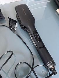Piastra GHD con due funzioni: asciuga e al contempo piastra i capelli. Possibile utilizzarla anche solo come piastra poiché dotata di un tastino che la trasforma in un normale styler per capelli.