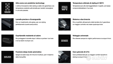 **Riduce la rottura del capello e 2x più protezione del colore vs una styler che lavora a 230°C.
