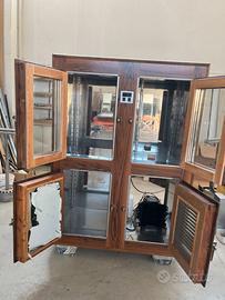 Frigo ghiacciaia restaurata resa a norma con tt i criteri con motore interno a luce led e griglie in metallo cromato isolameto interno inox