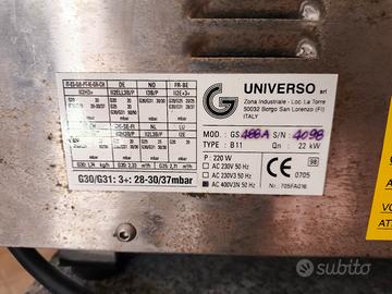 Per cessazione attività girarrosto professionale a gas marca Universo srl, modello GS 488 A (8 spiedi, capacità 48 polli). Macchinario robusto, ideale per alti volumi di lavoro.