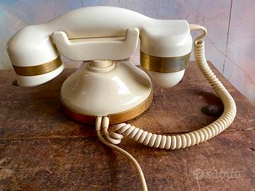 Telefono vintage beige in ottime condizioni , Questo elegante telefono vintage a disco rotante, in color crema con dettagli dorati, è un pezzo unico che aggiungerà un tocco di nostalgia e classe a qualsiasi ambiente. Dotato di una base rotonda con un disco centrale numerato per la composizione, il telefono include anche un ricevitore collegato da un cavo a spirale. Un accessorio aggiuntivo. Perfetto come oggetto da collezione o come elemento decorativo, questo telefono rappresenta il fascino della tecnologia del passato. Ideale per gli amanti del vintage e per chi cerca un pezzo di storia da esporre.