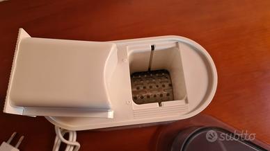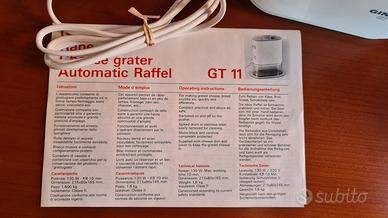 Grattuggia elettrica Girmi GT11 Ideale per grattuggiare formaggi, pane secco, frutta secca e cioccolato. Design compatto e facile da pulire. Prodotto vintage del marchio italiano Girmi. Si grattuggia direttamente nella ciotola che può essere usata a tavola. ciotola fornita di coperchio e piattino.