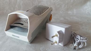 Mai utilizzata, rimasta sempre conservata. Ultima disponibile. La pratica grattugia elettrica con comodo trasformatore senza ulteriore consumo di batterie. Subito funzionante, pronta per grattugiare a tavola all'istante, senza nessuna fatica, qualsiasi cosa desiderate rendere a scaglie come formaggio, ma anche cioccolato, cedro, zucchine, ecc. Dimensioni: Lunghezza 18 cm, Larghezza 9 cm, Altezza 9 cm. Vendo totalmente nuova, scontata dal prezzo originale, per regalo inutilizzato.