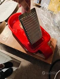 Versatile in quanto permette di grattugiare formaggio/verdure/cibi solidi direttamente in tavola. Presenta piedini antiscivolo.