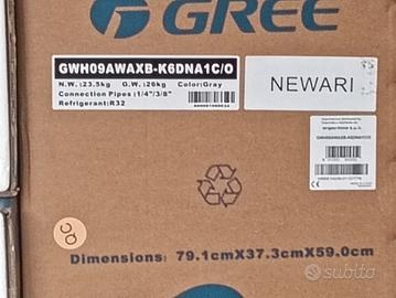 Vendo 3 climatizzatori monosplit Gree New Air 9000 BTU (2,5 kW freddo / 2,8 kW caldo) inverter con pompa di calore, classe A++ raffreddamento / A+ riscaldamento (SEER 6,8 / SCOP 4,0).