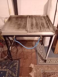 Fantastica griglia a gas inox con doppia piastra, accensione fornelli divisibile per piastra, gambe regolabili, scarico grassi, spessore acciaio 5mm misure totali 80 x 60, misure piastre 40 x 60. 450 euro Vincenzo 3285340741