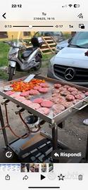 Griglia a gas 100x60 cm spessore piastra 5 mm aisi 316 acciaio alimentare ci stanno 50 hamburger con tubo di scarico 3 zone di calore distinte e regolabili uasata 3 volte molto facile da usare e pulire non fa fumo come la carbonella carrello con ruote x feste con tante persone si può cucinare x 30 /40 persone tranqullamente