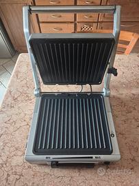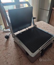 Vendo griglia/grill/piastra/bistecchiera antiaderente SEVERIN 1800W. Il prodotto in questione è nuovo, mai utilizzato, fornisco inoltre 2 set di placche antiaderenti, una liscia e una rigata. La piastra in questione ha molte funzionalità come la possibilità di aprirsi a 180° e usarla come bistecchiera; vassoio raccogli briciole e scolo; varie posizioni di apertura dell'elemento superiore tra qui bloccaggio e appunto mod. bistecchiera; pulsanti espulsione piastre (che fornisco lisce e rigate); possibilità di modulare la corrente quindi il calore degli elementi riscaldanti. Per ulteriori informazioni o foto non esitare a contattarmi.
