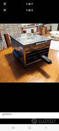 Griglia elettrica con piattoadi portata sopra e piatto di raccolta gocce sotto ; tutto in acciaio inox