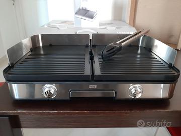 Vendo, causa scarso utilizzo, griglia elettrica XXL marca LEBENLANG, potenza 2400W - inncluse pinze per barbecue e paraspruzzi. Acquistato su amazon a settembre 2025, ancora in garanzia. Informazioni su questo articolo: ✅ CALORE PRECISO E RAPIDO: Elettrogrill a riscaldamento rapido con potenza di 2400W e distribuzione ottimizzata del calore, grazie a due regolatori di temperatura separati e regolabili in modo continuo e piastre di alta qualità in "ghisa" - Elementi riscaldanti ottimizzati che garantiscono fino a 240°C in pochissimo tempo ✅ Tecnologia TWIST&GRILL DUO: due piastre separate ciascuna con un lato scanalato e liscio e rivestimento antiaderente di alta qualità garantiscono l'aspetto desiderato per la carne grigliata, pesce o verdure - Tecnologia più innovativa per la plancha elettrica con ridotta formazione di fumo e scarico del grasso integrato nel mezzo ✅ PULIZIA SENZA SFORZO: Con il nostro Electric Grill Indoor la pulizia è completata in pochi minuti - Le piastre grill rimovibili, la vaschetta di raccolta del grasso e il paraspruzzi possono essere lavati in lavastoviglie I La base del grill elettrico da tavolo può essere pulita con un panno umido dopo il raffreddamento ✅ GRIGLIA DA CUCINA & GRIGLIA DA BALCONE: Griglia elettrica ideale per interni ed esterni (ad esempio, balcone) I Protezione anti-spruzzi integrata previene le macchie di grasso I Grazie alla piastra elettrica, si evitano fumi intensi e non è necessaria carbonella o gas costoso come nel caso dei grill a gas ✅ DATI: Griglia elettrica per bistecche 2400W | 2x regolatori di temperatura separati | Riscalda in secondi. I Lunghezza cavo 2m I Incluso: protezione anti-spruzzi & pinza da griglia I Tecnologia Twist & Grill Duo all'avanguardia I 2 piastre griglia con rivestimento antiaderente I Lavabile in lavastoviglie