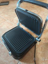 Griglia elettrica Kasanova in acciaio inox, in buone condizioni e completamente funzionante. È dotata di display digitale e regolazione della temperatura, ideale per grigliare carne, pesce, verdure, panini e toast in modo uniforme. Modello più avanzato, solido e pratico, con normali segni di utilizzo dovuti all’uso quotidiano.