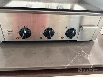 Piastra elettrica a doppia resistenza. Perfettamente funzionante. È una piastra professionale ma io la utilizzo per fare la carne arrosto a casa, adesso vendo per passare a quella piu’ grande
