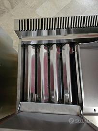 Commercialtecnica mette in vendita griglia professionale a GAS (21kW) marca Arris modello GV 807. Realizzato in acciaio INOX AISI 304, la griglia è senza la base perciò può essere usata anche come griglia da banco, è dotata di due zone cottura a temperatura regolabile, bruciatori completi di fiamma pilota e termocoppia di sicurezza. Questo modello viene fornito con due piastre lisce, ma all’occorrenza possono essere usate anche quelle rigate.