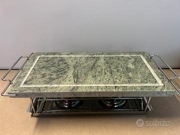 Grill Hot Stone con pietra ollare rettangolare e supporto in acciaio inox.