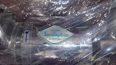 Gruppo Combinato Tritacarne e Grattugia Swedlinghaus – Nuovo, Con Pellicola Protettiva Proponiamo in vendita un gruppo combinato, composto da tritacarne e grattugia, della prestigiosa marca Swedlinghaus, ideale per chi desidera una soluzione versatile e professionale per la lavorazione di alimenti. L'apparecchio è nuovo, mai utilizzato, e ancora protetto dalla pellicola originale, come evidente nelle immagini allegate. Caratteristiche principali: Alta qualità: prodotto robusto, concepito per garantire prestazioni ottimali anche in ambienti professionali. Versatilità: combinazione di tritacarne e grattugia in un'unica macchina, per rispondere a molteplici esigenze in cucina. Condizioni impeccabili: il prodotto è nuovo e conserva ancora la pellicola protettiva. Si precisa che la foto di copertura è puramente indicativa e non rappresenta il prodotto effettivo, il quale appare nelle foto successive in modo dettagliato, dove si può osservare la sua condizione perfetta e l'involucro protettivo intatto. Prezzo: 427€, comprensivo di IVA (350€ per il prodotto + 77€ di IVA). Spedizione: La spedizione è disponibile e può essere concordata con l'acquirente in base alla destinazione. Si prega di contattare per definire i dettagli e i costi. Per qualsiasi domanda o richiesta di ulteriori dettagli, non esitate a contattarci. Disponibilità immediata per il ritiro.
