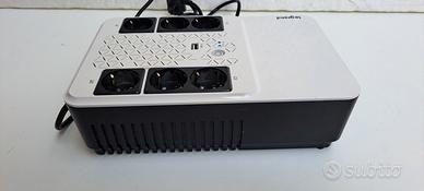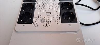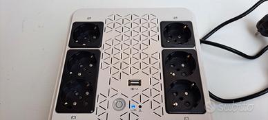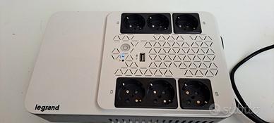 Gruppo di Continuità (UPS) Legrand Keor Multiplug Funzione: Fornisce continuità di alimentazione e protezione da picchi di tensione per apparecchiature elettroniche sensibili. Prese: Dispone di 6 prese di uscita, in formato Schuko/Tedesco. Caratteristiche aggiuntive: Include una porta USB per la ricarica di dispositivi mobili e tecnologia "line interactive" con stabilizzatore elettronico (AVR). Capacità: potenza nominale 800VA.
