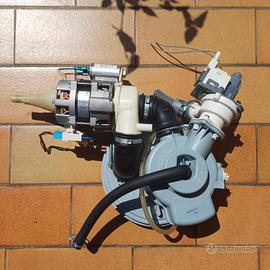 gruppo motore con motorino della pompa di scarico dell'acqua della lavastoviglie Candy Brava perfettamente funzionante con vasca e guarnizione O ring