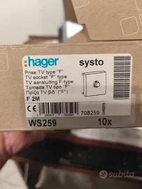 HAGER Systo WS259 2M presa TV tipo f bianca (10 pezzi per scatola) Prezzo 60€. ACQUISTATO PER RISTRUTTURAZIONE ALLOGGIO MAI USATO VENDO PER INUTILIZZO.