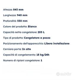 Vendo congelatore pozzetto HAIER 203 lt. in buono stato. Ritiro a carico dell'acquirente
