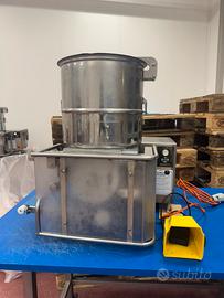 Macchina in acciaio inox per la produzione di hamburger, completa di nastro trasportatore e accessori con contenitore da 25kg. Ideale per macellerie, laboratori alimentari e industrie di trasformazione carne. In ottime condizioni, pronta all’uso.