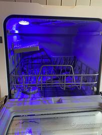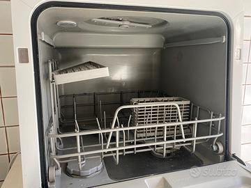 questa lavastoviglie non necessita di allacciamento idraulico. Utilizza 3 caraffe d'acqua per ciclo.