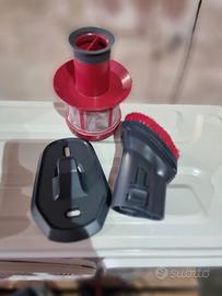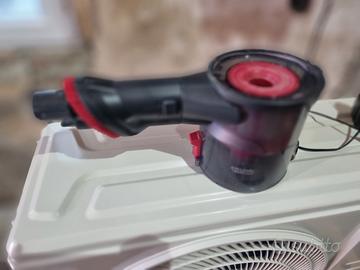 Aspirapolvere portatile Hoover H100 FREE, ideale per pulizie rapide. Due motori disponibili [Problema chiusura serbatoio] - Colore grigio scuro e dettagli rossi. - Design compatto e maneggevole. - Include 2 filtri