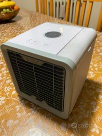 Condizionatore con serbatoio di acqua. Funziona mettendo L' acqua nel serbatoio, si collega il filo alla porta usb , successivamente si preme power.