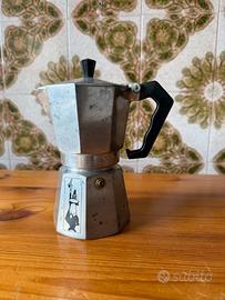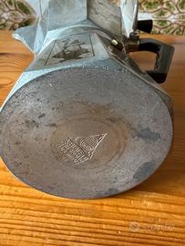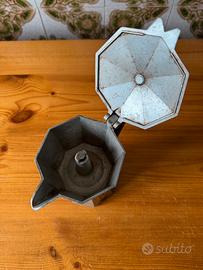 Iconica caffettiera Bialetti Moka Express originale, risalente agli anni '70.