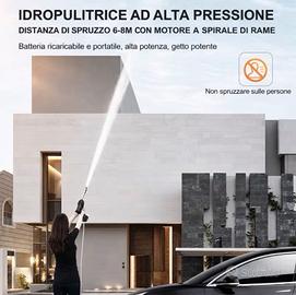 Idropulitrice Portatile a Doppia Batteria 42 V con Kit Valigetta Completa e 2 Batterie Ricaricabili ad Alta Capacità + Accessori Integrati per Pulizie