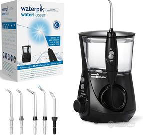Waterpik Idropulsore Dentale Ultra Professional con 6 Testine e Sistema Avanzato di Controllo della Pressione con 10 Impostazioni, Strumento di Rimozione della Placca Dentale, Nero (WP-662EU) Denti più puliti - questo efficiente idropulsore è il 50% più efficace del filo interdentale tradizionale e lascia la bocca incredibilmente fresca e pulita Facile rimozione della placca - rimuove fino al 99,9% della placca in soli 3 secondi. Perfetto per chi ha difficoltà a usare il filo interdentale, gli stuzzicadenti o gli scovolini interdentali Sicuro e delicato - ideale per apparecchi, impianti, corone, ponti o tasche parodontali. 3 volte più efficace del filo interdentale per la pulizia dell'apparecchio con la testina Orthodontic Gengive più forti - massaggia, stimola e mantiene le gengive forti e sane migliorando la circolazione. Combina la pressione dell'acqua e le pulsazioni per pulire tra i denti e sotto la linea gengivale Si adatta alla tua routine di pulizia - 6 testine, 10 regolazioni di pressione per una pulizia da delicata a intensa, serbatoio da 650 ml per più di 90 secondi di autonomia, garanzia di 2 anni