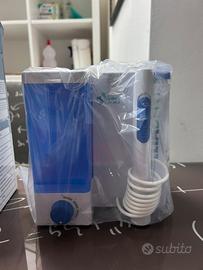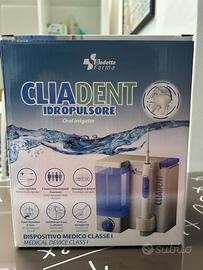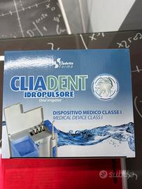 idropulsore originale Cliadent, con serbatoio per acqua o colluttorio. 4 testine intercambiabili, massaggia le gengive, si puo appendere al muro ed ha un getto regolabile a piacere. Chiaramente nuovo!