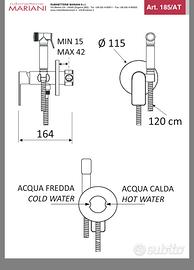 Miscelatore incasso shut-off con doccia a pulsante, flessibile con attacco conico cm 120, con piastra tonda in ottone cromato. Nuovo