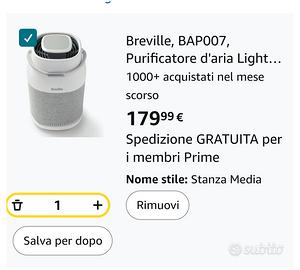 Purificatore d'aria Breville BAP007 Light Protect 360° - Nuovo, Certificato AHAM, Filtro HEPA H13 True