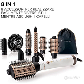 Bellissima Imetec Air Wonder, Spazzola Ad Aria Calda, Tecnologia a Ioni, Spazzole Rivestite In Ceramica e Cheratina, Asciuga, Dona Volume, 8 Accessori, 1000 W, bianco.