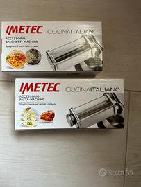 Vendo IMETEC ZERO-GLU KM1500 – Impastatrice Planetaria 1500W 6 Litri + 2 ACCESSORI PASTA FRESCA – NUOVA MAI USATA. Set completo NUOVO, SIGILLATO. Tutto ancora imballato nella plastica originale e nel polistirolo di fabbrica (come da foto). Cosa include: 1. Impastatrice Imetec Zero-Glu KM 1500 (colore grigio scuro); • Potenza 1500 W – 7 velocità + pulse • Ciotola inox da 6 litri con manici • Movimento planetario professionale • Gancio esclusivo ZERO-GLU per impasti senza glutine perfetti • Frusta a filo, frusta piatta e gancio standard inclusi • Paraspruzzi con apertura per aggiungere ingredienti • Libro ricette senza glutine di Marco Scaglione (60 ricette) 2. Accessorio Spaghetti-Machine (per spaghetti freschi) – nuovo sigillato 3. Accessorio Pasta-Machine (sfoglia per lasagne, ravioli, fettuccine) – nuovo sigillato Prezzo di listino totale (solo corpo macchina + 2 accessori): oltre 480-500 €