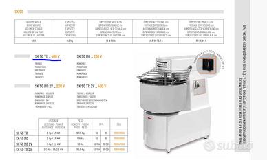 vendo come da foto reali Impastatrice a spirale Restoitalia tr50 400v trifase 48litri 43kg di impasto in inox testa fissa, motore fabbricazione italiana e riduttore italiano. Semplice e molto robusta professionale. con un prezzo aggiuntivo a parte posso dare un inverter che permette di trasformarla da trifase a monofase casalinga, è da montare, può anche regolare la velocità di funzionamento con 150€ in più adatta a pane pizze panificati farinaci impasti di tutti i tipi la descrivono sulla taglia dei 50kg però 40kg con la trifase li tira bene. pesa più di 100kg quindi c'è da organizzarsi per venirla a prendere o se ve la porto io ci si mette d'accordo. ovviamente non è comodo spedirla. 3393758338